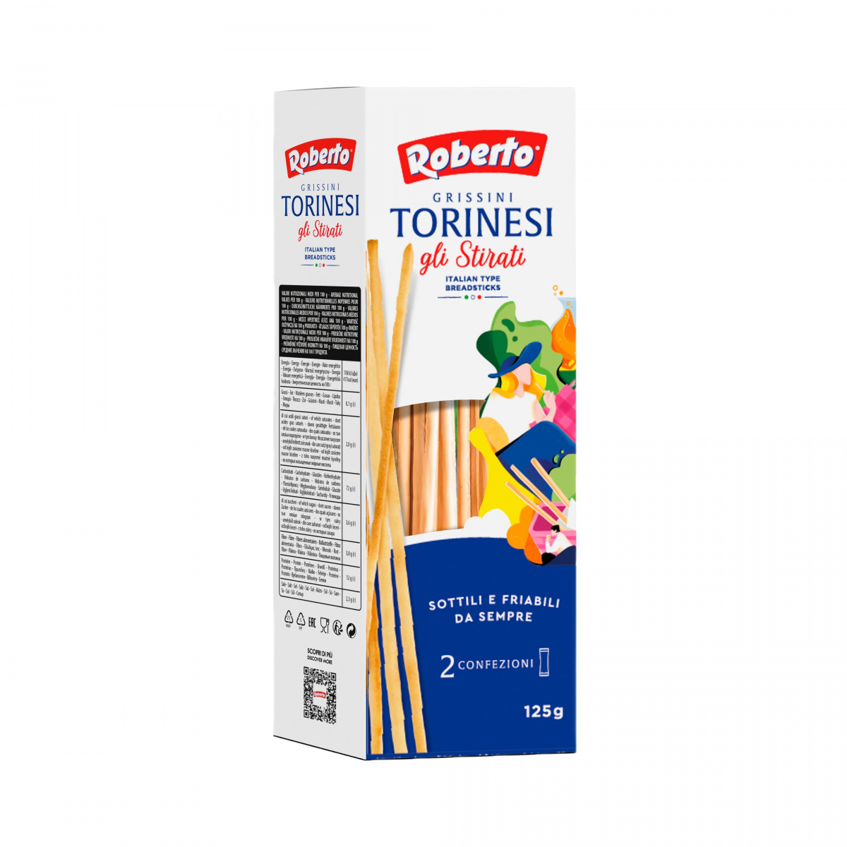 Хлебные палочки Гриссини Торинези подчеркнут вкус моркови, свеклы, тыквы, брокколи, шпината. Прекрасно гармонируют с сыром и вином в конце приема пищи. Во многих коктейль-барах гриссини подают как универсальную закуску к любого рода алкогольным коктейлям. О производителе: Компания «Roberto Alimentare S.r.l.» основана в 1962 году.Сочетание традиций качественного производства хлеба с самыми современными технологиями и потребностями рынка и безграничная любовь к своему делу принесли компании «Roberto Srl» известность и популярность во многих странах мира. Сегодня компания Roberto Alimentare s.r.l. - признанный лидер в Италии в сегменте производства хлебобулочных изделий с долей рынка по некоторым группам товаров более 30%. Компания «Roberto» стремится обеспечить высокий уровень механизации и автоматизации технологических процессов производства хлеба, внедрение новых технологий и постоянное расширение ассортимента хлебобулочных изделий.
