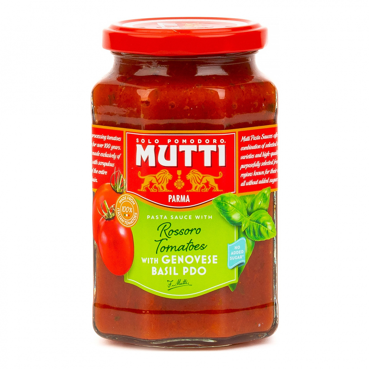 MUTTI ПРЕДСТАВЛЯЕТ ЛИНЕЙКУ ТОМАТНЫХ СОУСОВ ДЛЯ ПАСТЫ SIMPLY SUGO Линейка соусов Simply Sugo бренда "Mutti" объединила в себе уважение к традициям и ноу-хау, как и остальные продукты бренда. К основе соуса, мелконарезанным томатам, добавлено небольшое количество томатной пасты и несколько 100% высококачественных итальянских ингредиентов из традиционной итальянской кухни для создания уникальных вкусов: оливки, базилик, сыр Пармиджано Реджано, перец чили и овощи-гриль. СОУС ТОМАТНЫЙ С БАЗИЛИКОМ SIMPLY SUGO Соусы Simply Sugo появились благодаря страсти семьи "Mutti" к производству только лучших продуктов из итальянских томатов. К основе соуса, мелконарезанным томатам, добавлено немного томатной пасты для усиления аромата и подлинного вкуса томатов. К томатам добавлены свежие листья базилика, которые придают классическому сочетанию безошибочно узнаваемый итальянский оттенок.