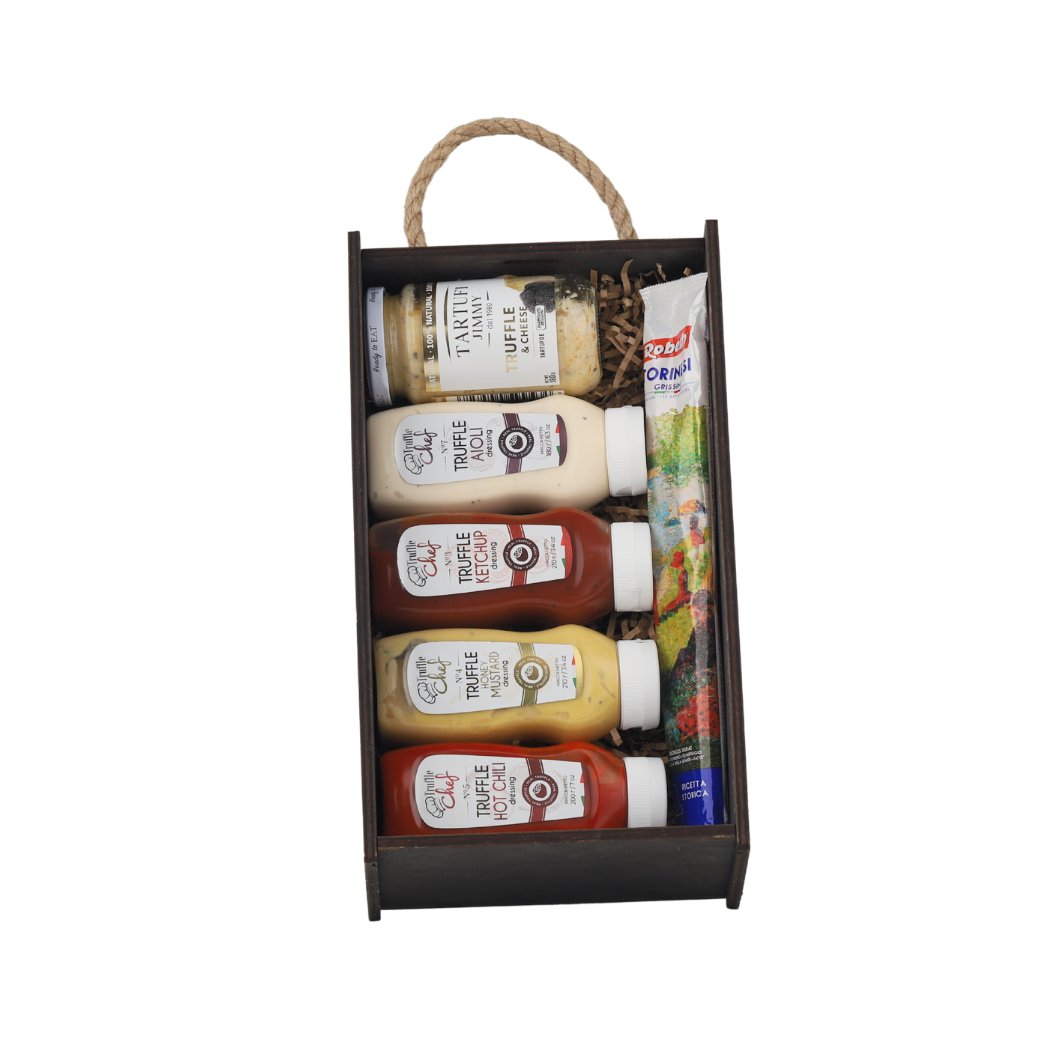 Соус грибной трюфельный 3% c "Пармиджано Реджано", Tartufi Jimmy (0,180кг), Горчица с трюфелем, Truffle Chef (0,210кг), Острый соус чили с трюфелем, Truffle Chef (0,200кг), Кетчуп с трюфелем, Truffle Chef (0,210кг), Айоли с трюфелем, Truffle Chef (0,180кг), Палочки Хлебные Гриссини Торинези, Roberto (0,350кг)