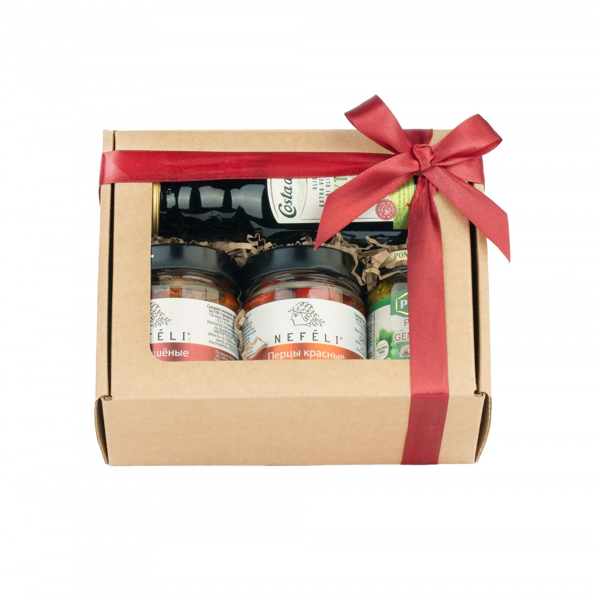 Изысканный гастрономический набор в стильной крафтовой коробке с атласной лентой станет отличным подарком для ценителей средиземноморской кухни. Внутри собраны продукты высокого качества, которые подчеркнут вкус любимых блюд и подарят новые гастрономические впечатления.